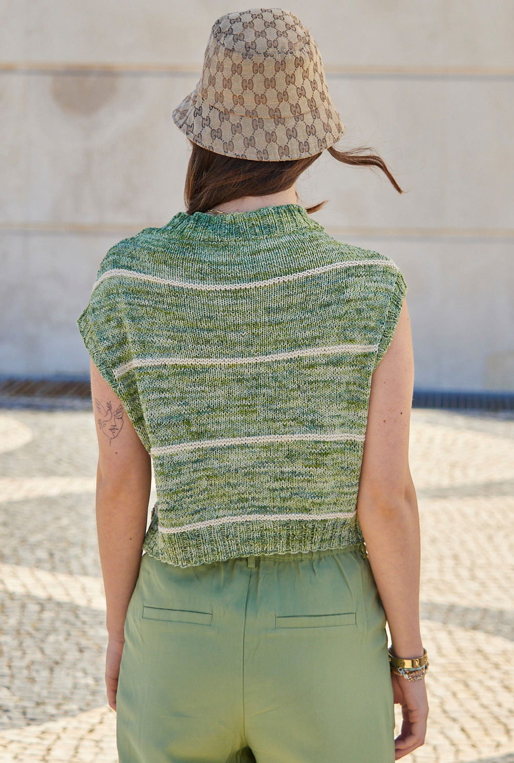 Sabrina Strickjournal Gestreiftes Top in Grün mit ecrufarbenen Streifen