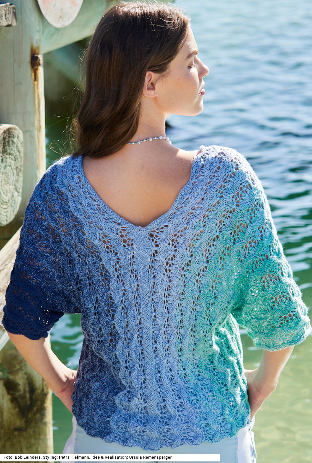 Sabrina Strickjournal Quer gestricktes Top in Blau-Türkistönen
