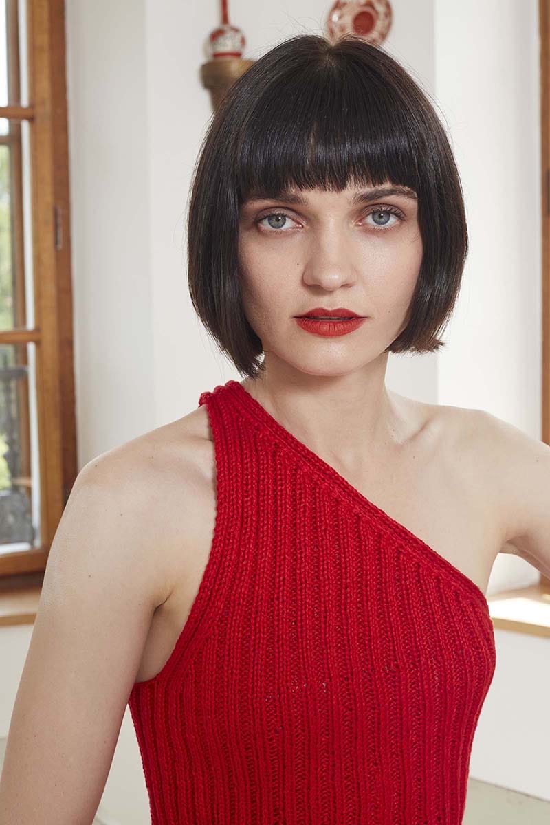 Whether you want to wear the top as a set or prefer to wear it separately. You’ll feel like the shining centerpiece. Especially since the yarn is called SUNSHINE. Whether you go for the warm, deep burgundy red or the spicy red this top will make you feel truly feminine.