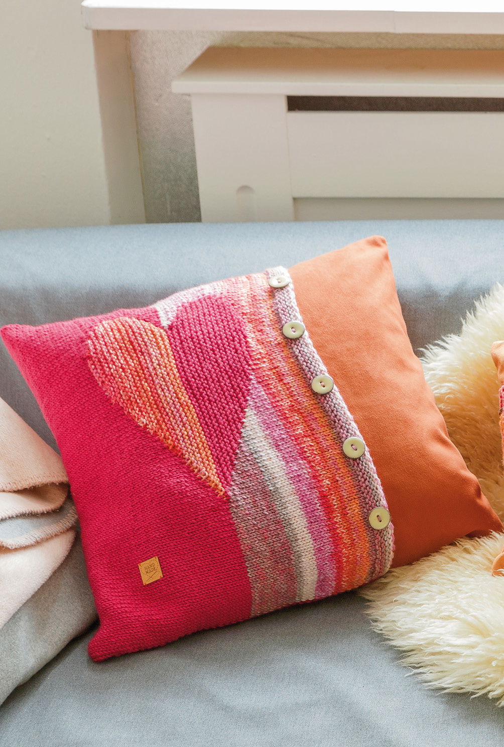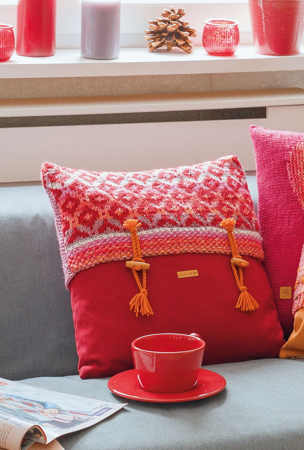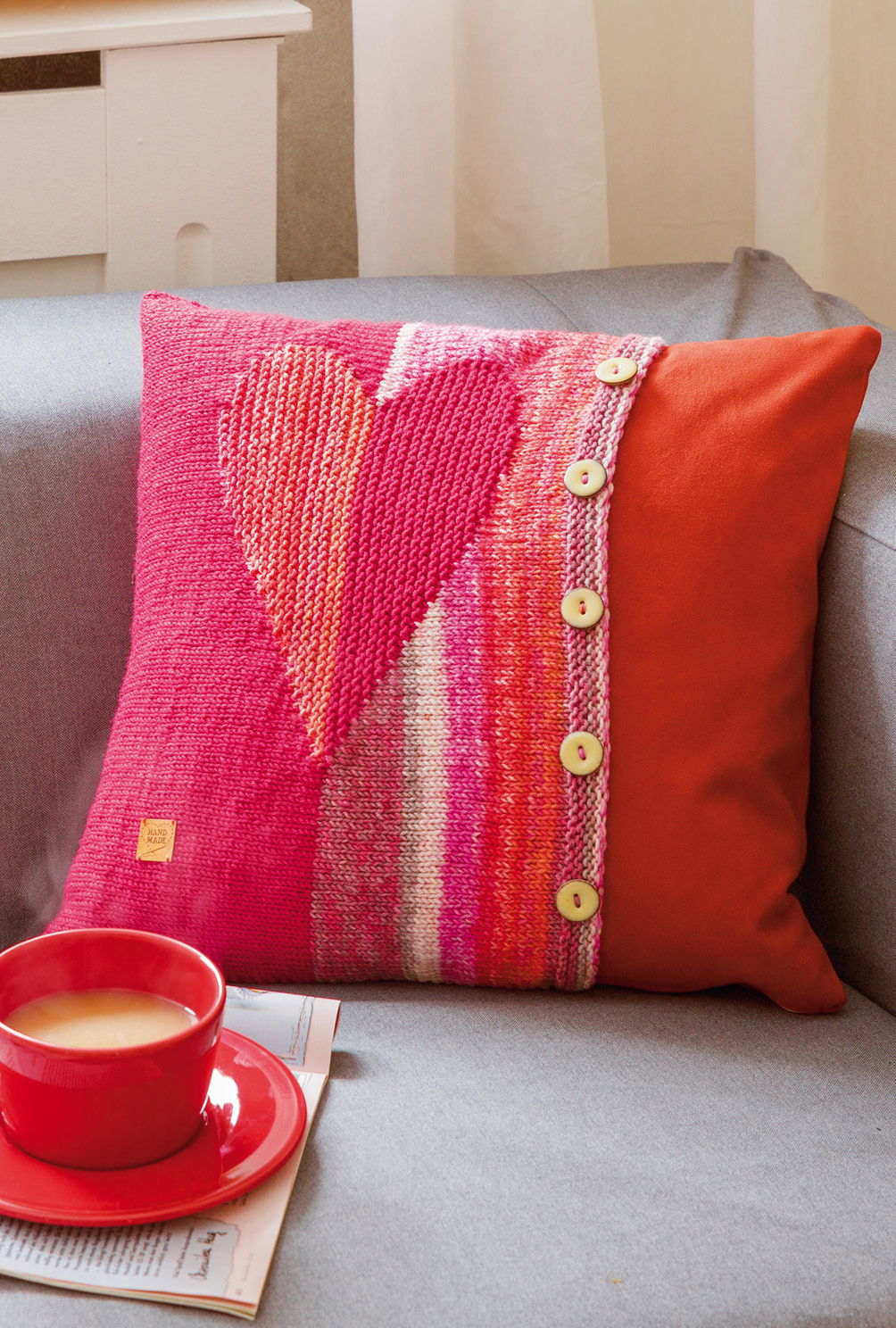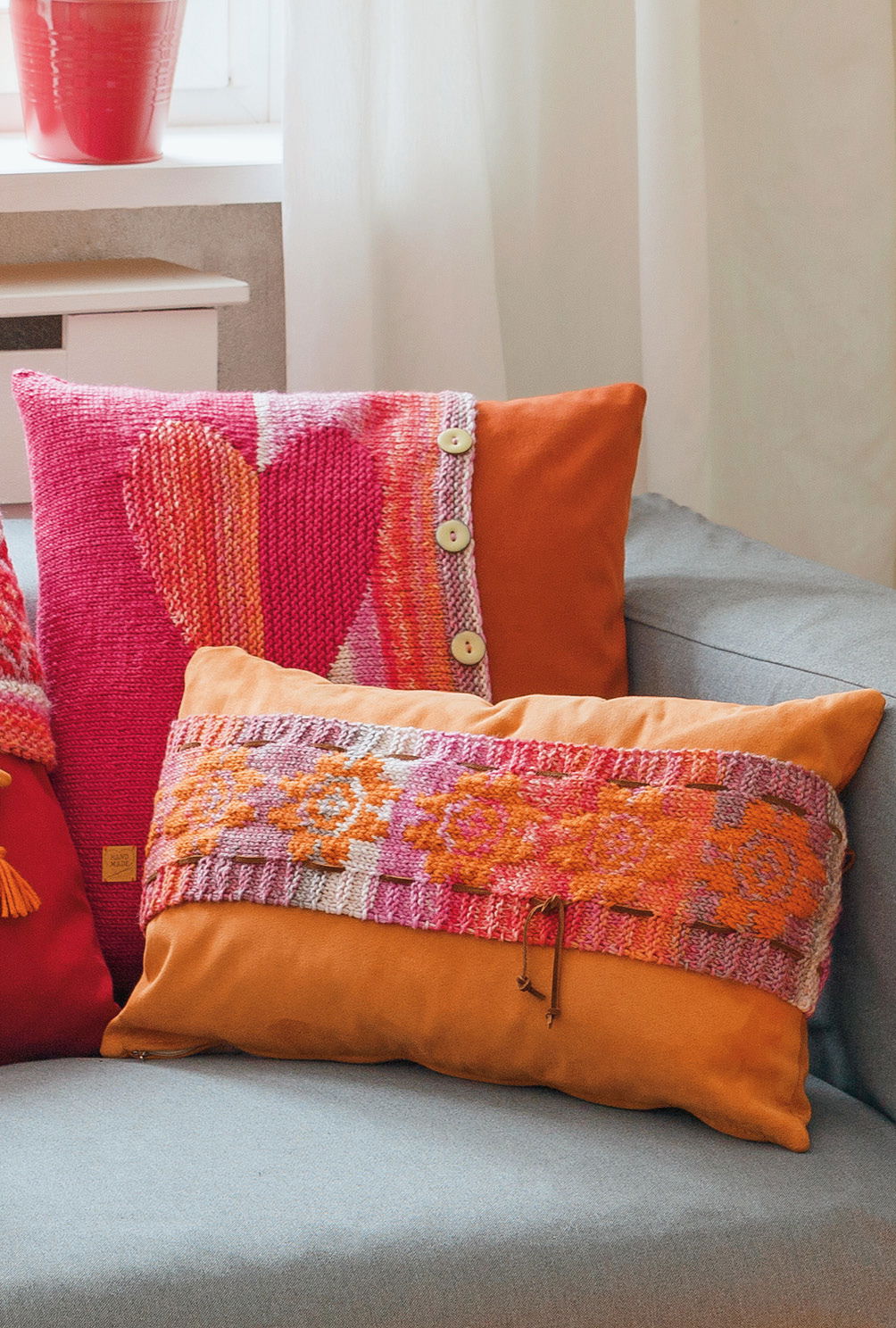 Kissen mit Herz: Kissen: 43 x 43 cm, Hülle: ca 31 x 43 cm; Rechteckiges Kissen: Kissen: 47 x 30 cm, Strickband: ca 14 cm breit, 93 cm Umfang; Quadratisches Kissen: Kissen: 43 x 43 cm, Hülle: ca 43 x 24,5 cm