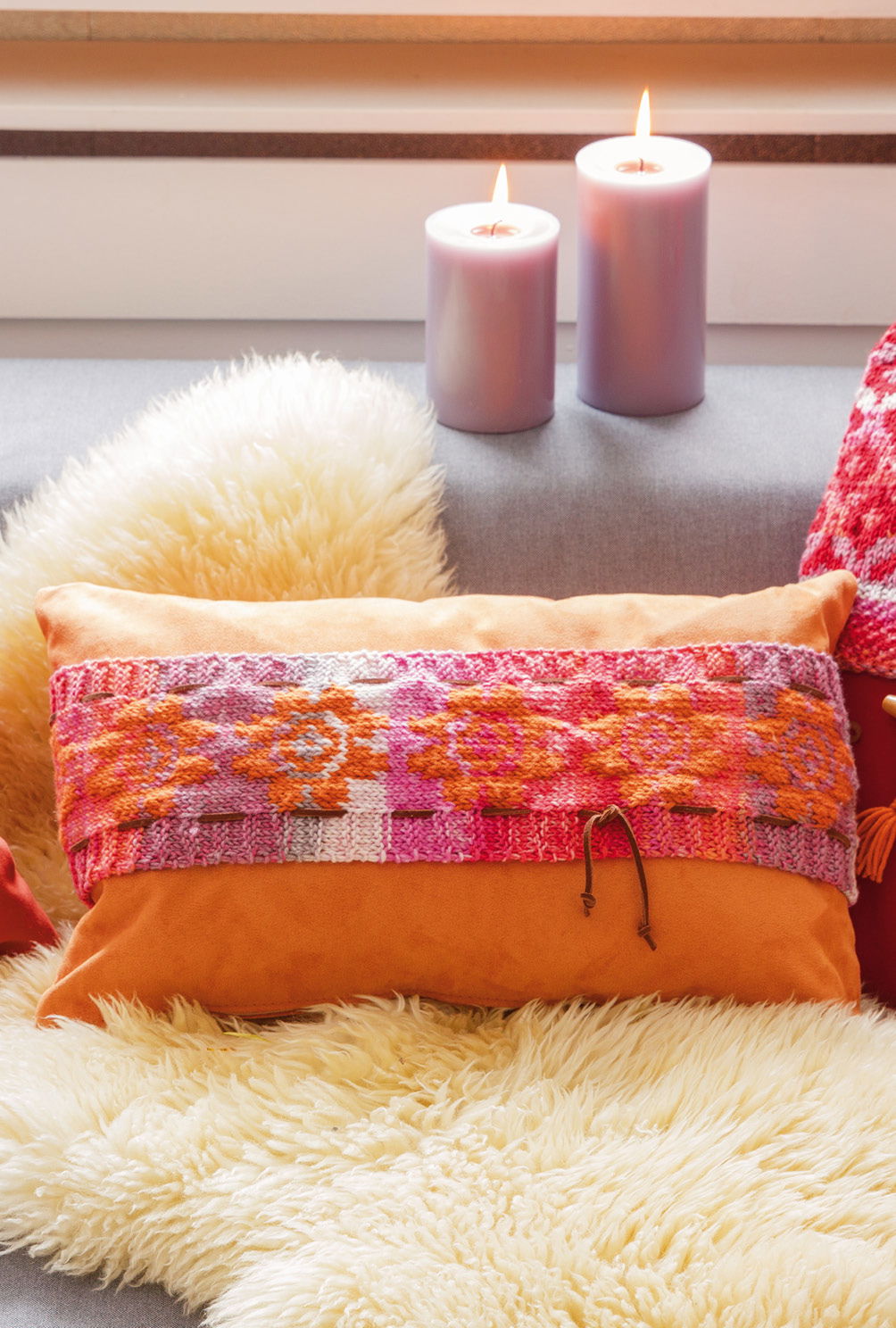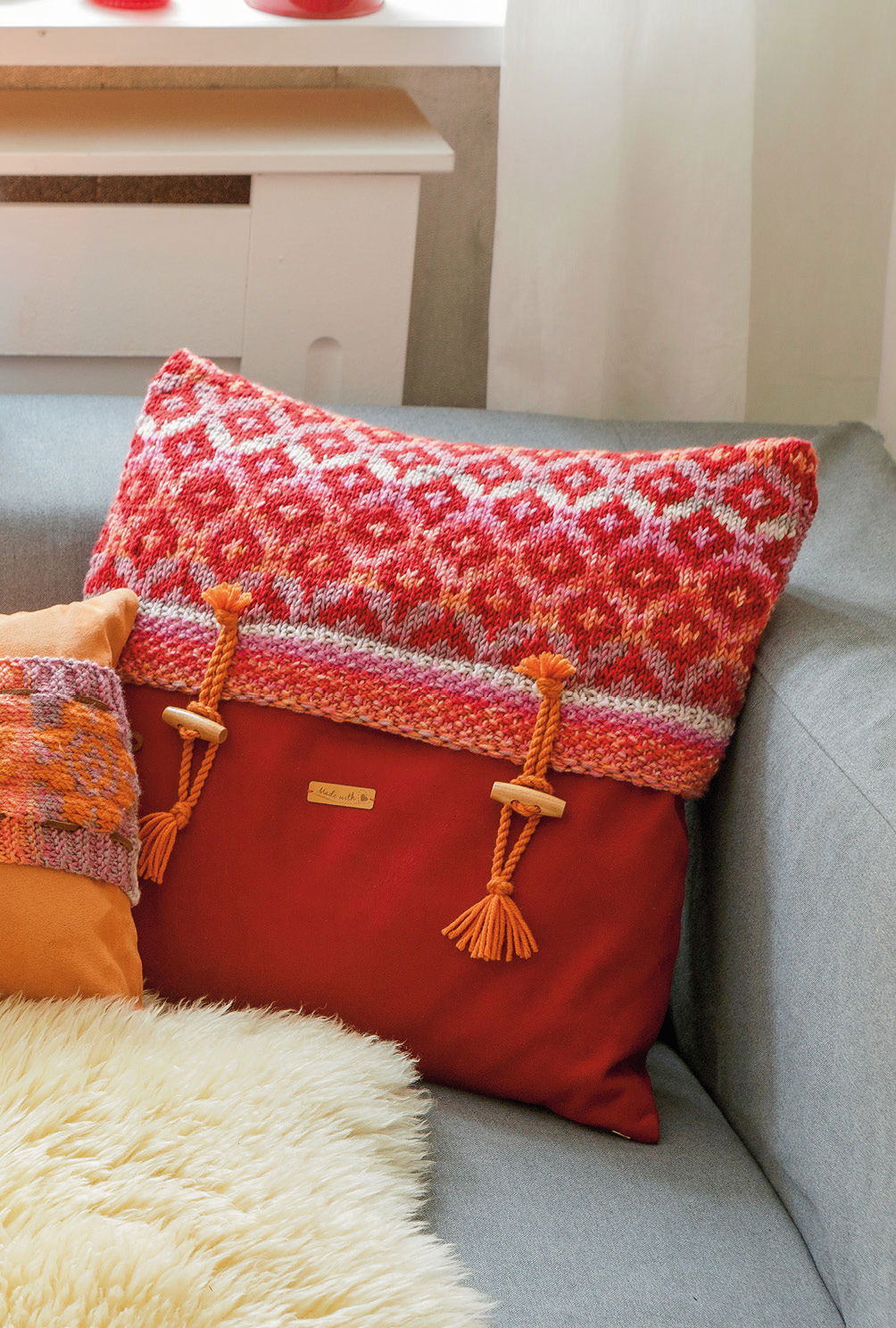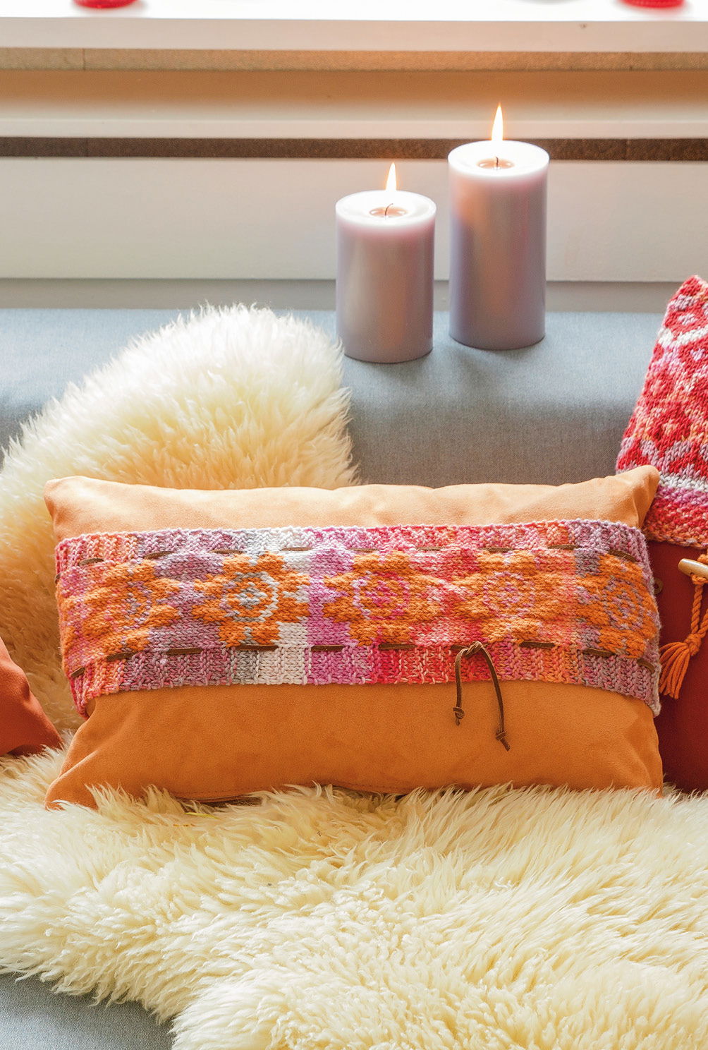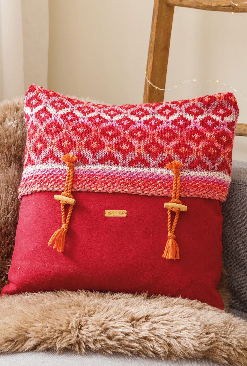 Kissen mit Herz: Kissen: 43 x 43 cm, Hülle: ca 31 x 43 cm; Rechteckiges Kissen: Kissen: 47 x 30 cm, Strickband: ca 14 cm breit, 93 cm Umfang; Quadratisches Kissen: Kissen: 43 x 43 cm, Hülle: ca 43 x 24,5 cm