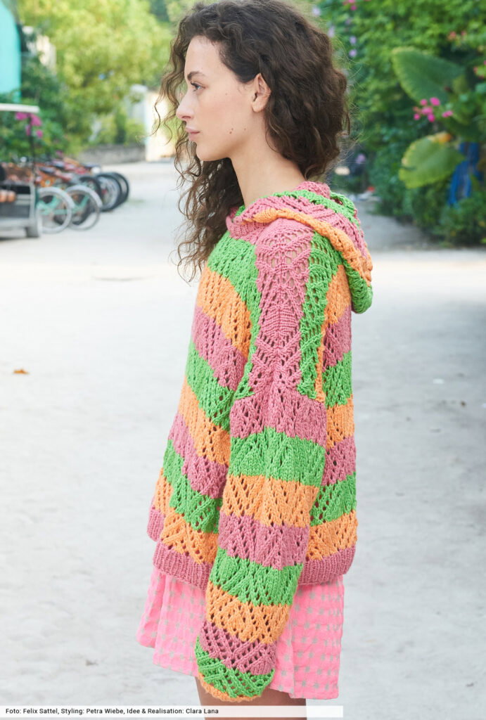 Ist die Wahl aber erst einmal getroffen, wartet noch die eigentliche Überraschung: Wie sieht das Garn gestrickt aus? Entstehen kleinteilige Farbmuster oder doch eher großzügige Flächen? Welcher Ton ist dominant? Eine wirklich spannende Angelegenheit.