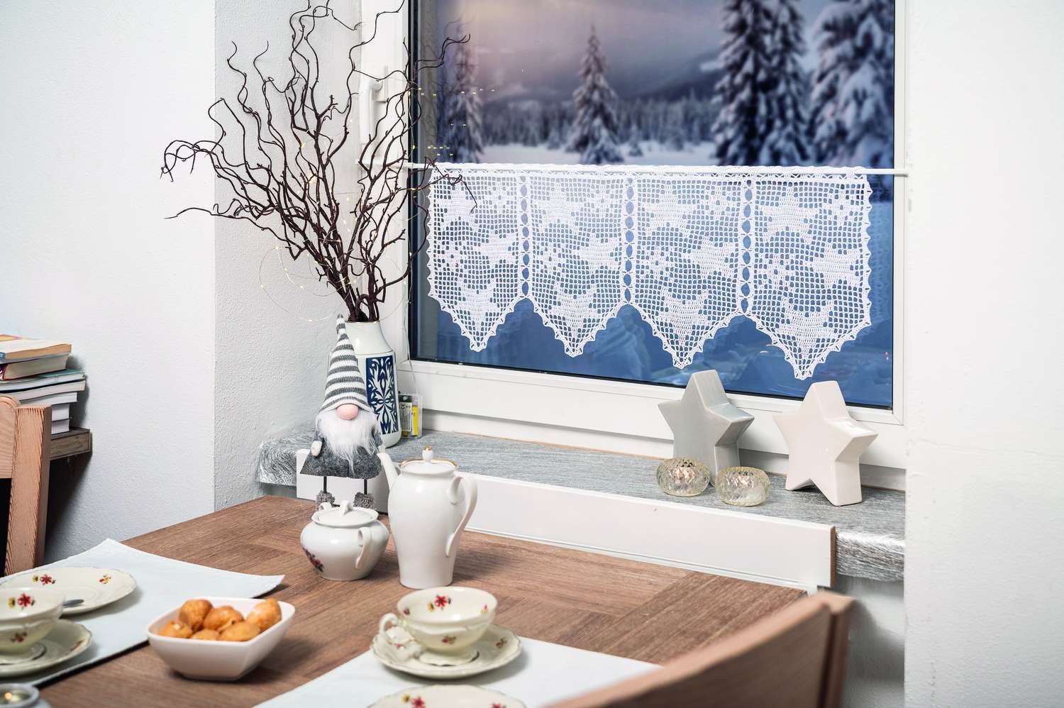 Wenn es draußen kalt und ungemütlich wird, machen wir es uns mit der Bistrogardine, auf der Schneeflocken tanzen, drinnen so richtig schön. Den Winter genießen jetzt Schneehase, Eisbär und Rentier ganz warm eingekuschelt in schicken Schals und mit Mütze. Für Kinder von drei bis sechs Jahren haben wir ein bezauberndes Pinguin-Strickset in Form von Mütze und Schal entworfen. Lässige Outfits für einen kuschlig-coolen Winter findest du in unserem Mode-Strickteil. Die niedliche, gehäkelte Zahnfee kommt über Nacht, wenn der erste Milchzahn ausfällt. Wie idyllisch der Winter sein kann, zeigen dekorative Häuser, die sich in soften Tönen und hübsch beleuchtet präsentieren. Mit den gestrickten Stuhlhussen und dem Tischband lässt sich das Ambiente in deinem Heim schnell ändern und verleiht deinem Raum eine besondere Eleganz. Drei Kissenhüllen aus edlem Samt bezaubern als Hingucker mit ihren Biesen, den schmal abgesteppten Falten. Im Lehrgang erklären wir, wie du die optische Besonderheit selbst nähen kannst. Wenn du noch auf der Suche nach kleinen Geschenken für gute Freunde oder Familie bist, dann schau in unser Special. Dort sind in Teamarbeit lauter schnelle Ideen fürs Weihnachtsfest entstanden. Dies und vieles mehr findest du in der neuen Ausgabe von Anna Handarbeiten!