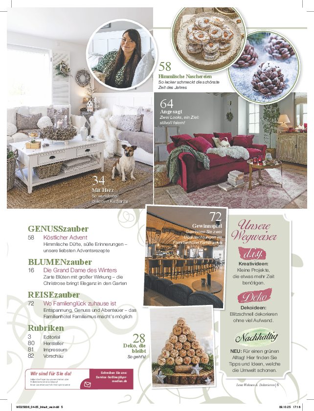 Draußen glitzert der Frost, drinnen knistert das Feuer. Zeit, es sich richtig gemütlich zu machen. In dieser Ausgabe von Lena Wohnen & Dekorieren widmen wir uns all den Dingen, die das Herz wärmen. Mit natürlichen Materialien, liebevollen DIY-Ideen und kleinen Momenten des Glücks. Im STYLE GUIDE Xmas im Scandi-Style zeigen wir dir, wie du mit hellen Farben, klaren Linien und viel Hygge den nordischen Wohnraum Wirklichkeit werden lassen kannst. Passend dazu erwarten dich im SPECIAL, mit Liebe selbstgemacht, kreative Upcycling-Ideen und nachhaltige Dekovorschläge, mit denen du Weihnachten bewusst und stilvoll feiern kannst. Unsere Christrosen bringen mit ihren eleganten Blüten einen Hauch Winterpoesie in dein Zuhause, während unsere Weihnachtsbäckerei mit himmlischen Rezepten zum Genießen einladen. Mit dabei ist wieder unser Reise-Gewinnspiel und viele weitere Tipps und Inspirationen für dein Heim