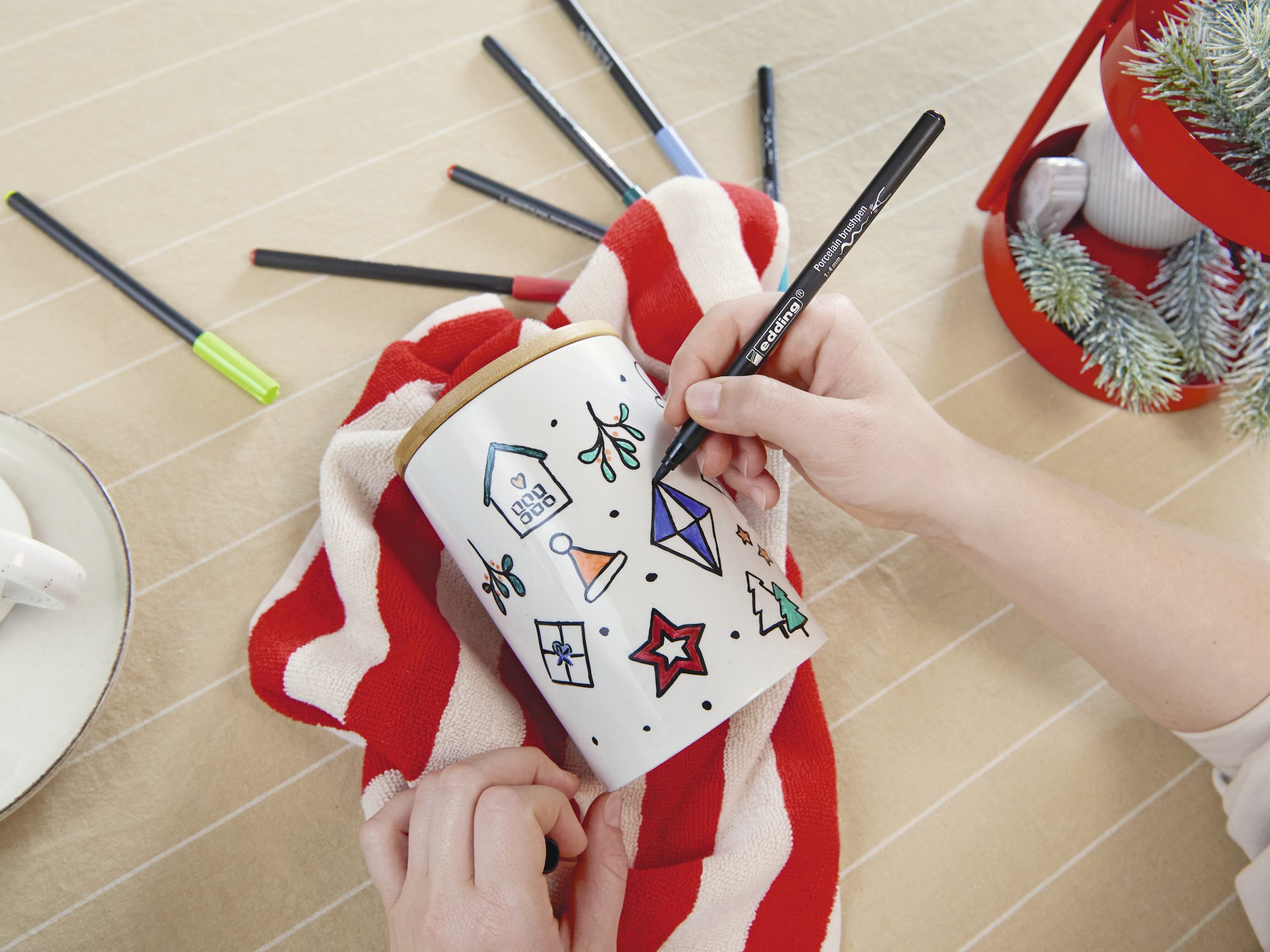 Mach aus einer einfachen Porzellandose ein ganz persönliches Geschenk! Mit den edding 4200 Porzellan-Pinselstiften verwandelst du schlichte Becher oder Dosen in liebevoll bemalte Einzelstücke – perfekt als individuelle Weihnachtsgeschenke oder stilvolle Dekoration für dein Zuhause. Ob Sterne, Tannenbäume oder winterliche Muster – diese Motive gelingen auch Einsteigern spielend leicht.