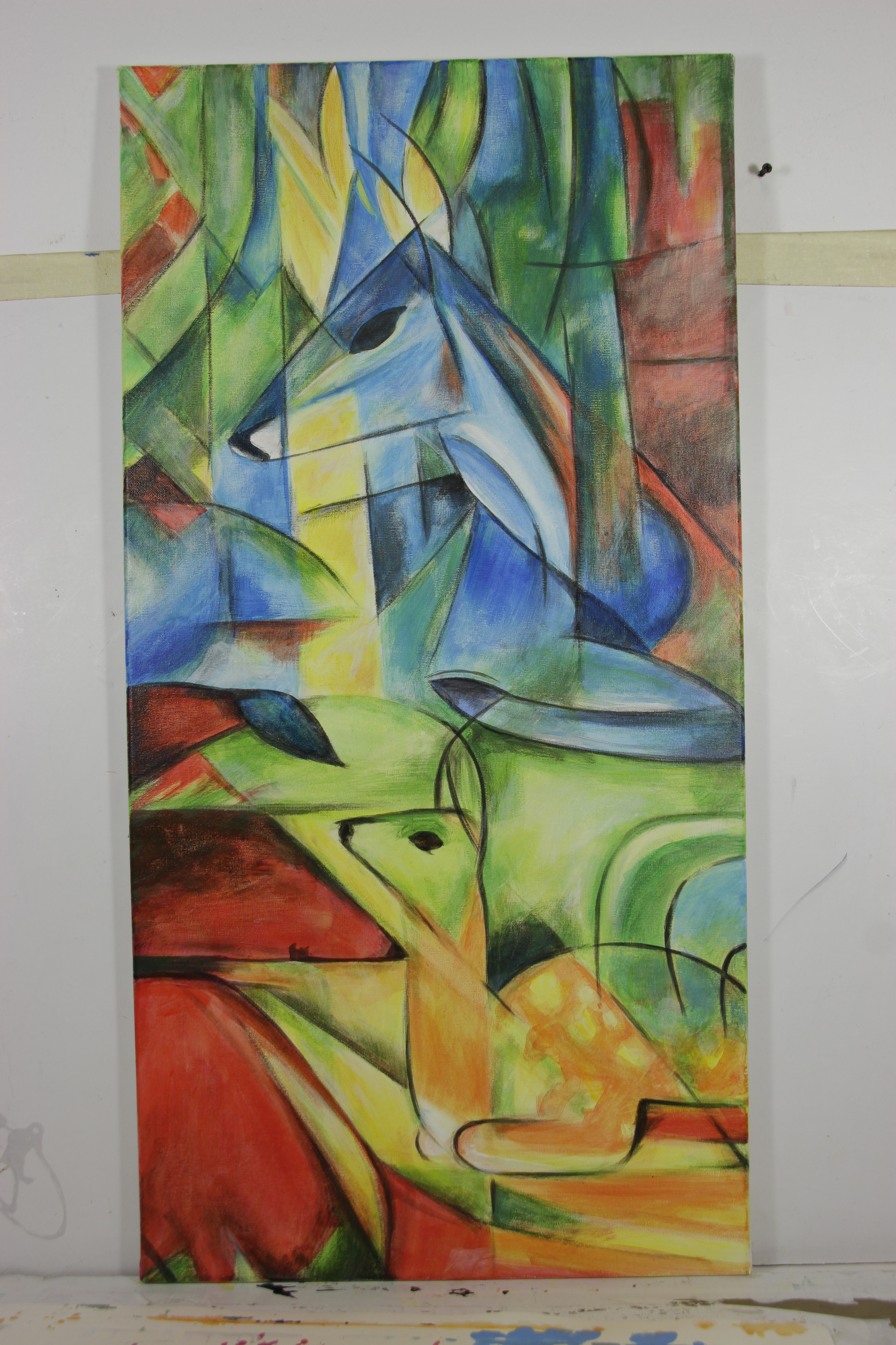Nachempfundenes Motiv: Thomas Boehler, Original: Franz Marc, Rote Rehe II, Öl auf Leinwand, 1912